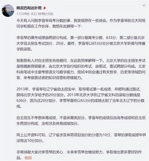 难道李雪琴真如网友所说,利用“假特长”加分混取北大学历?看了她北大同学的澄清,才明白一切都是一个大乌龙!