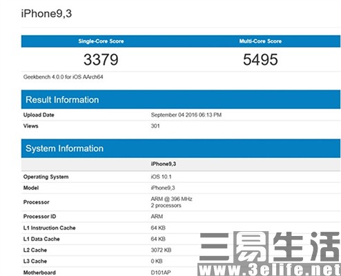 跑分数据中不难看出,A10单核心分数为3379,多核心分数为5495。单核性能在现阶段近乎无敌,而多核心也基本和Exynos 8890、海思麒麟955等旗舰处理器非常接近。据此前爆料,A10处理器将采用16nm FinFET Plus InFO工艺,频率将高达2.4GHz,比之A9提升足足30%。
