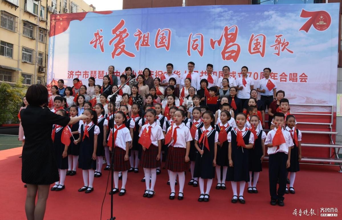 “我爱祖国,同唱国歌”,9月27日,济宁市琵琶山中心小学校举行合唱会。