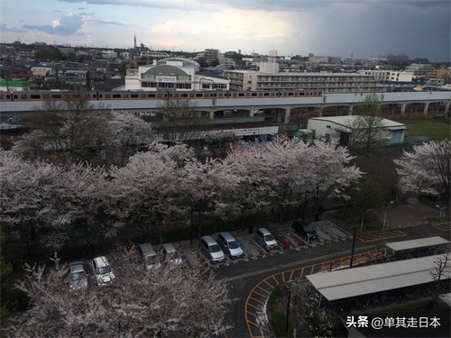 6.这是个人最喜欢的一张照片。雨后的天空,远处还有一片乌云,一缕阳光穿过乌云透了出来。配合着盛开的樱花和飞驰而过的电车,是人类社会与自然环境的完美演出。