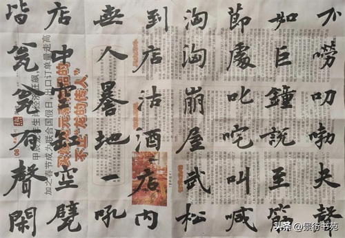 继续废报纸上练字,魏碑楷书抄写张岱《柳敬亭说书》