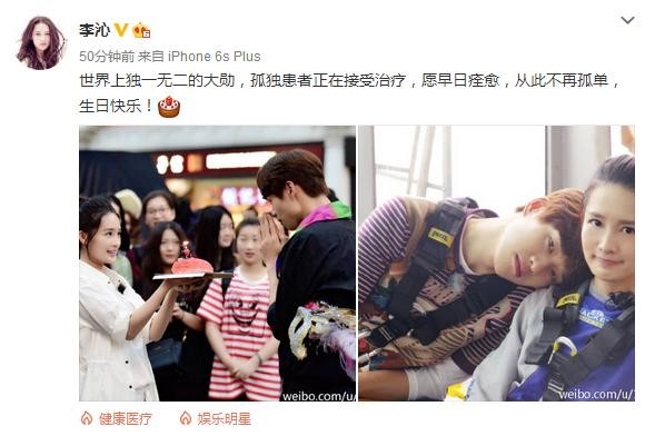 李沁:世界上独一无二的大勋,孤独患者正在接受治疗,愿早日痊愈,从此不再孤单,生日快乐!
