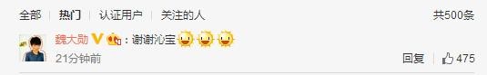 魏大勋也在下面回复“谢谢沁宝”~