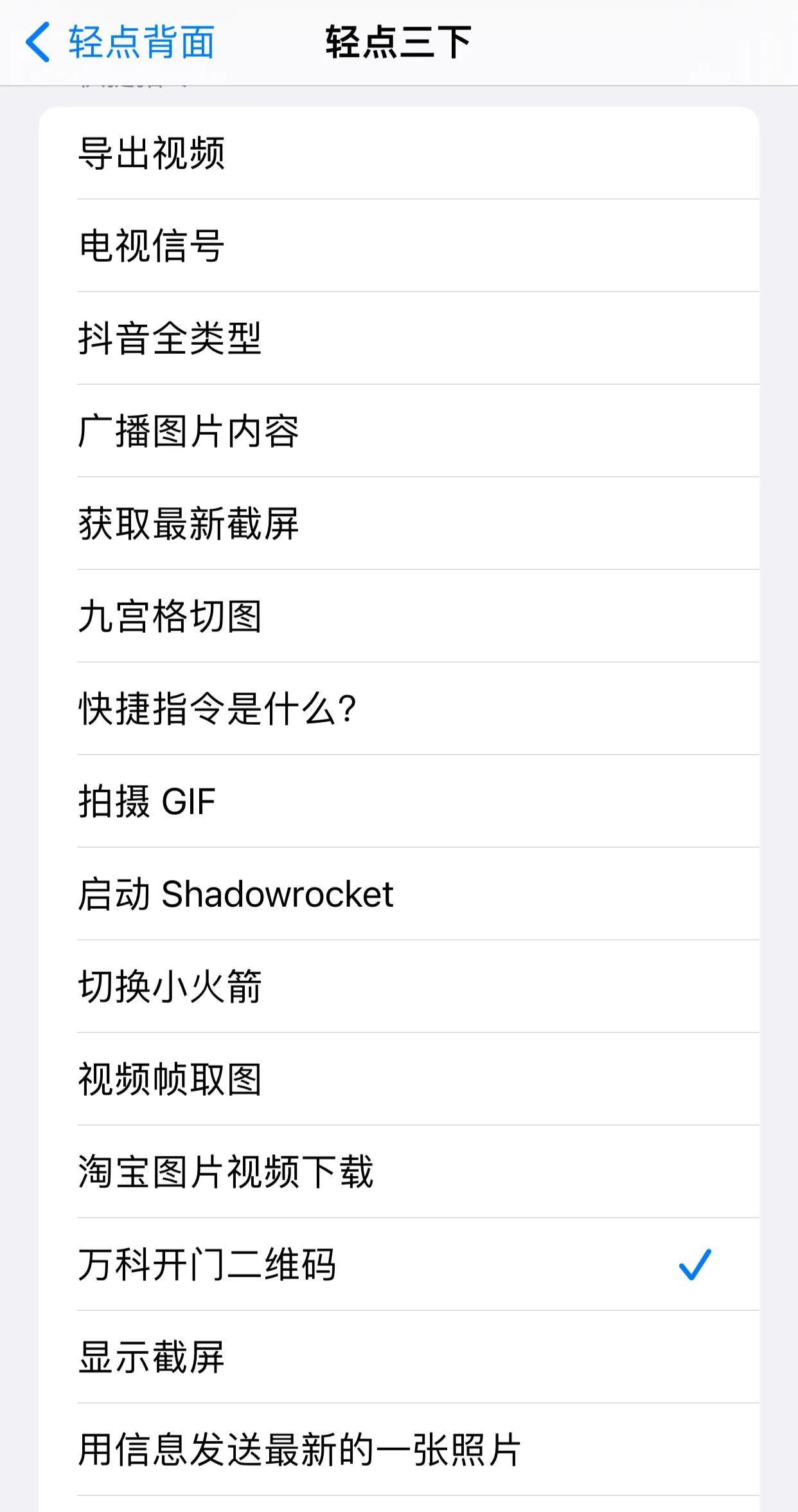 进入设置-辅助功能-触控,滑到最后的轻点背面,在轻点两下或轻点三下里选择刚才设置的快捷指令。如果是iPhone15 pro,用快捷按键来调用快捷指令更方便。