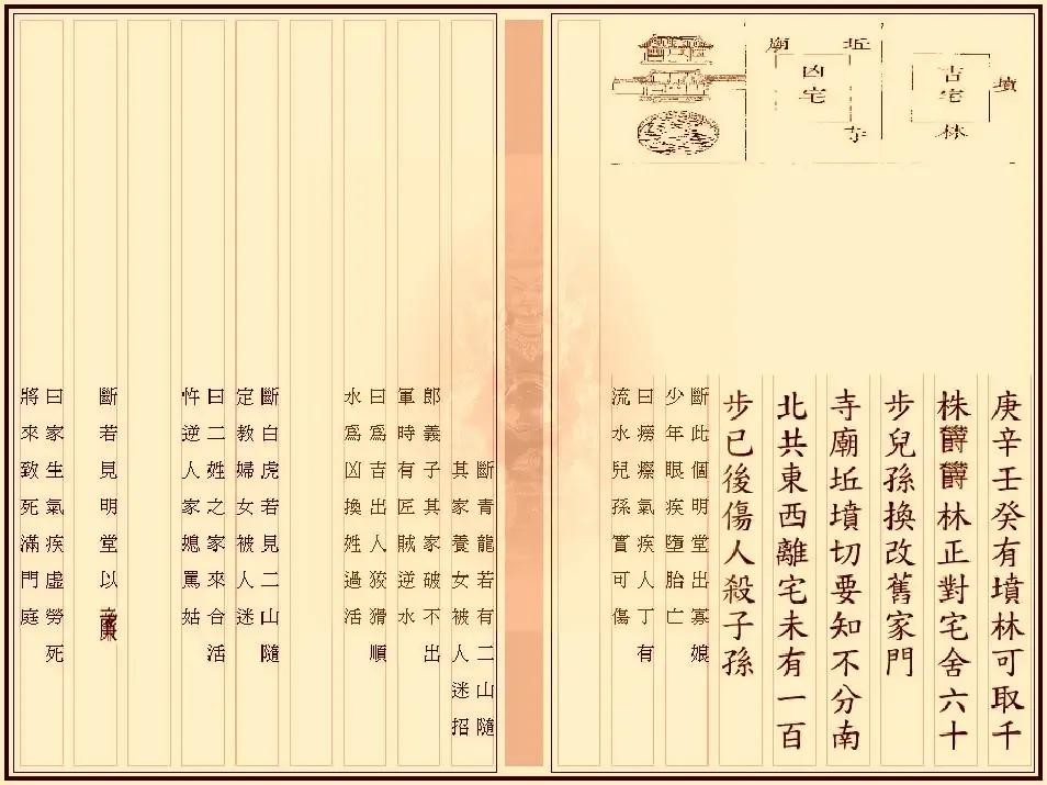 精选了当时最盛行的堪舆学术著述,将其汇总而成。该书内容丰富,针对性强,以条目形式逐项介绍阐述。既有阳宅理论,如福元法、大游年法、东西宅四宅法,以及卦例、星命等的具体介绍,又涉及到阳宅营建元素的方方面面