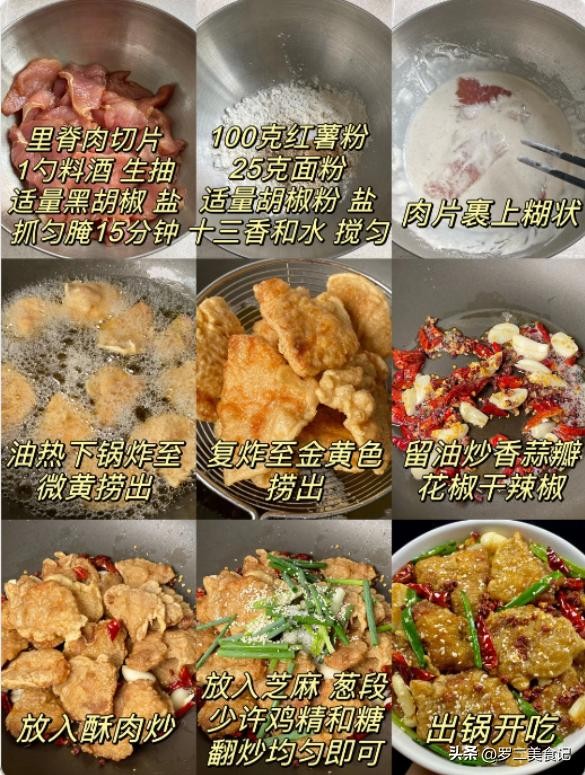 材料:里脊肉,红薯粉,面粉,大蒜,干辣椒。