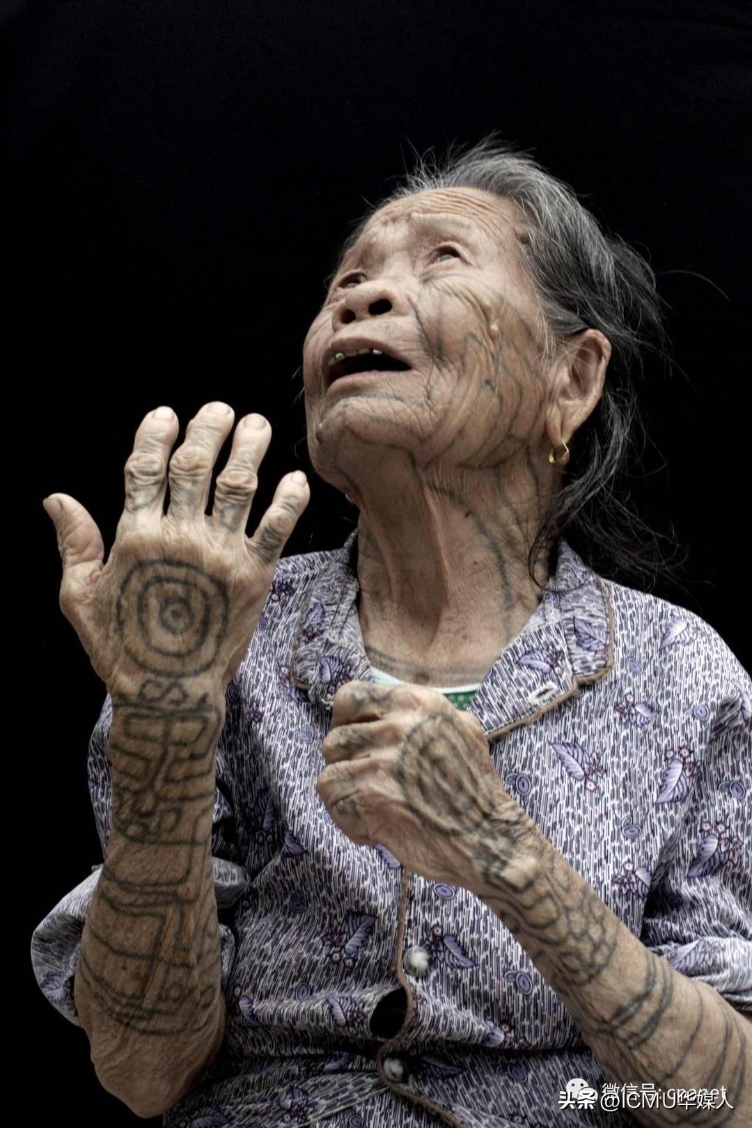 原来不知道黎族有纹身的习俗,也不知道纹身有那么多讲究,在2024海南采访行最后一站采访时偶然发现了一则黎族女子纹身的牌子,上面写到: 黎族文身历史古远,据历史文献记载,黎族文身距今已有三千多年的历史,是黎族母系社会的遗存,也被称为是民俗里的“活化石”。 黎族文身,一般从黎族成年女子开始,是一种成年礼纹,都要在结婚之前完成。据《广东新语》记载:(黎族女人)文面一如祖先的样,丝毫不敢乱改,说是怕死后祖宗不认识。另外,受聘(待嫁)以前文手,临嫁前一晚才文面,纹样都是男子家里给的,作为记号。使女子不能再行改嫁,这正是古时所说的“雕题”。题是额头,雕是绣(文)。文面的方法是用针、笔和蓝颜料划刻在脸上。由于黎族分为哈、杞、润、美孚、赛五大方言区域,除赛方言女子没有文身外,不同方言的女子文身的图案也有所不同。黎族女子通过在身体上的不同部位,包括脸颊、前额、下巴、颈部、前胸、后背、腿脚、手臂等文饰不同的图案,同时也是用来表达祈福、辟邪保平安和种族的信仰意愿。虽然如此,也只是意义上的一面。然而其原始的含义探究,要追溯到三千多年前的历史渊源,和其历史流传的演变过程, 才能揭开其神秘的面纱,透视其民族群体文化生命中的密码。