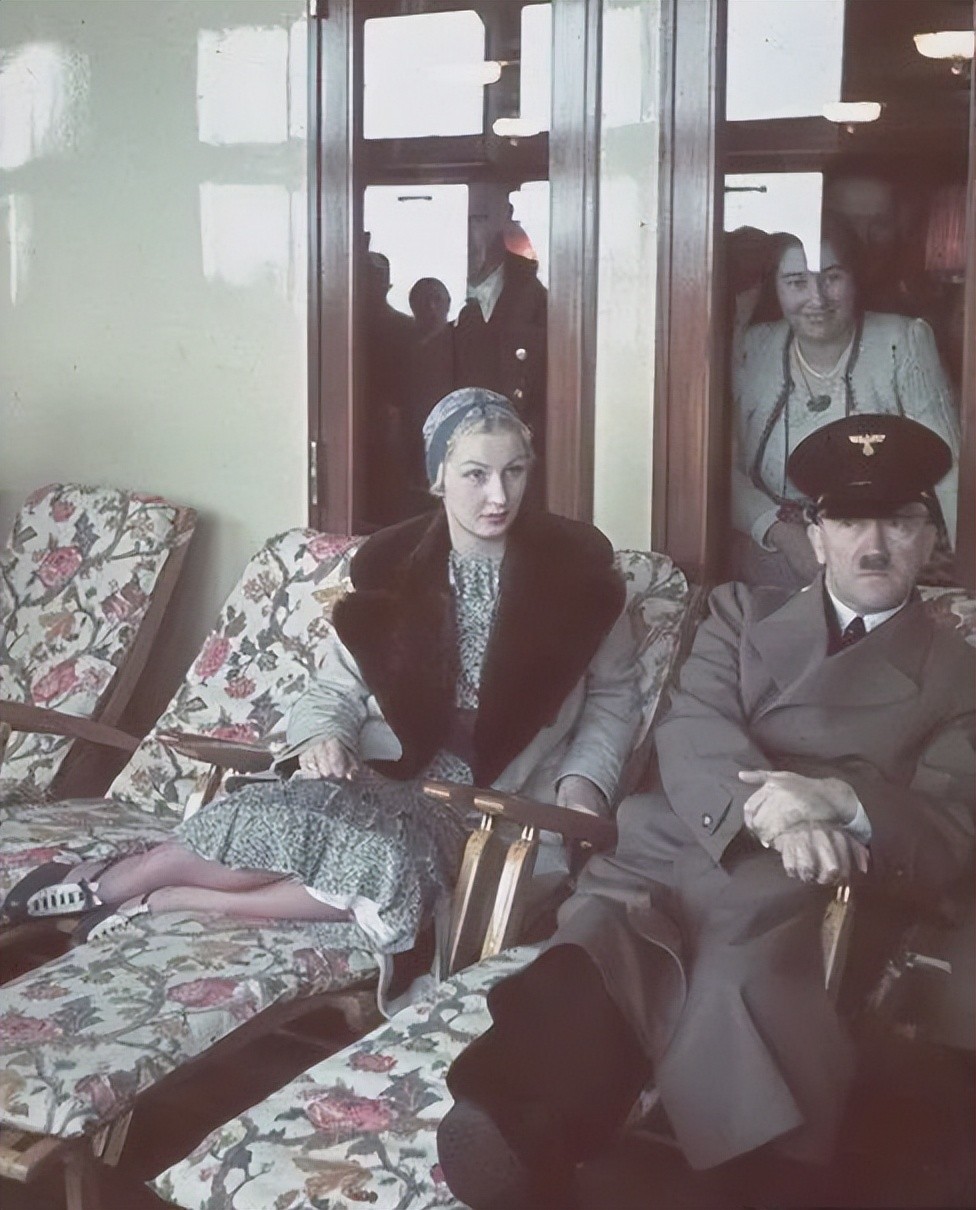 刚从情人转正,成为希特勒夫人第二天的埃娃坐在希特勒旁边,浅色高跟鞋、黑色连衣裙、颈部镶有一圈玫瑰花饰,埃娃死亡原因是服用了氰化钾。