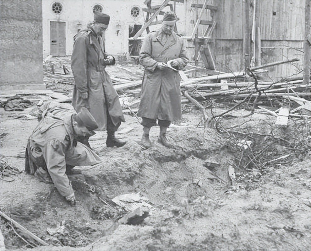 1945年5月1日,在希特勒私人防空避难所旁边,发现了一具烧焦的女性尸体,一具是烧焦的男性尸体。