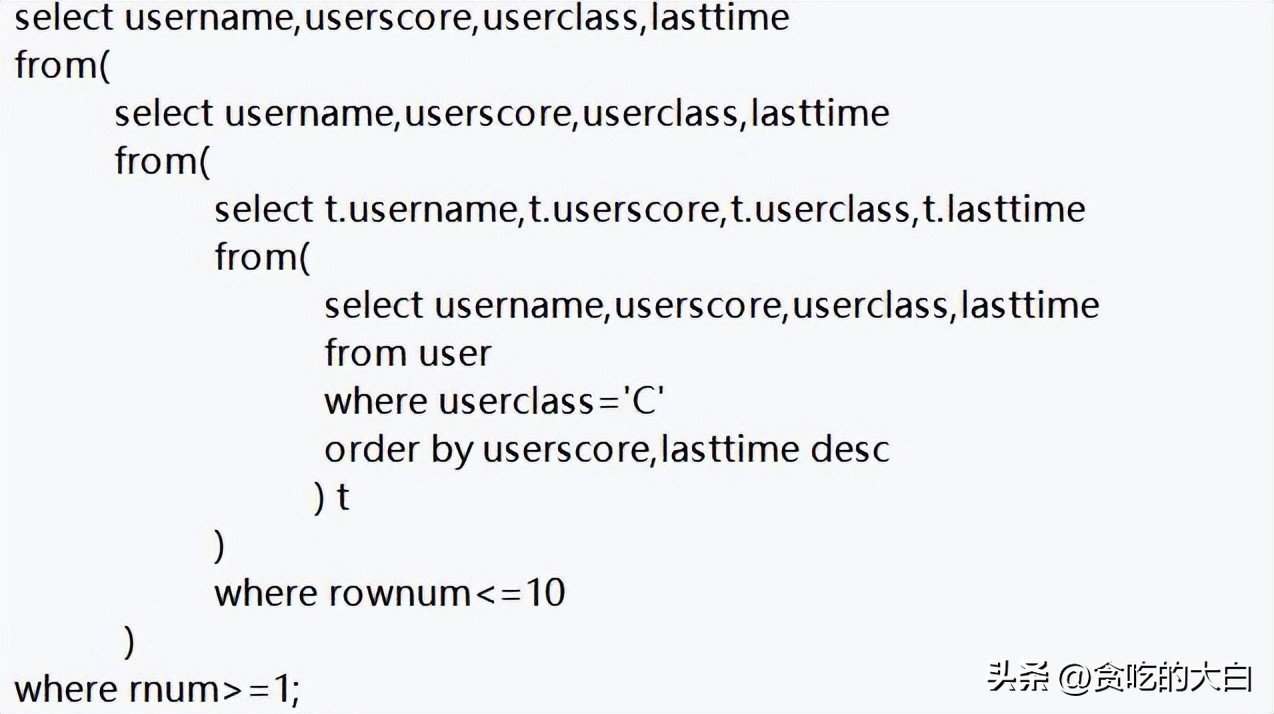 对名为user的用户信息表执行分页查询,查询最近访问但积分最低的前10位类别为C类用户,分页语句如下所示。