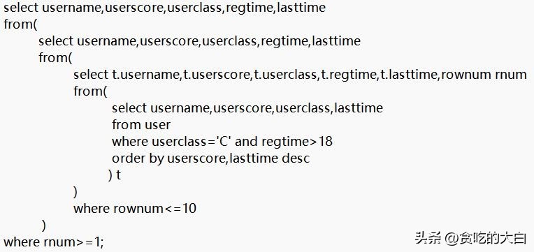 对名为user的用户信息表执行分页查询,查询最近访问但积分最低的且注册时间大于18个月的前10位类别为C类用户,分页语句如下所示。