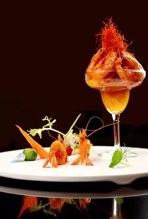 主料:花虾350g 辅料:小青柠檬1只、小胡萝卜1根、葱10g、姜15g 调料:黑加仑汁50g、苹果醋20g 、冰糖10g、橙汁30g 制作: 1、将虾洗净,改刀后入热油中炸至金黄色,沥干油待用。 2、用黑加仑、橙汁、苹果醋、冰糖、姜葱混合料用小火调制成汁。 3、将沥干油的虾装盘,淋入汁,用小青柠檬、小胡萝卜点缀即可。