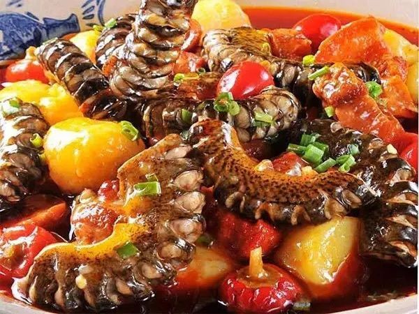 2、锅入油烧热,煸香五花肉片,入葱、姜、蒜、干辣椒、面酱炒香,入梭鱼,烹白酒,加清水小火焖25分钟至汤汁浓稠,出锅码盘即可。
