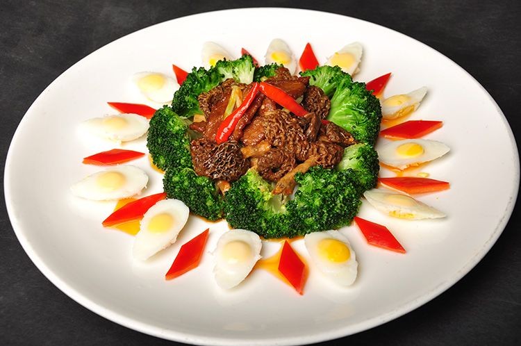 羊肚菌500克、黄牛肉250克、西兰花100克