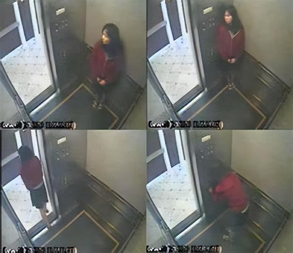 而最让人感到诡异的是警方公布的一段她在酒店电梯内的监控录像