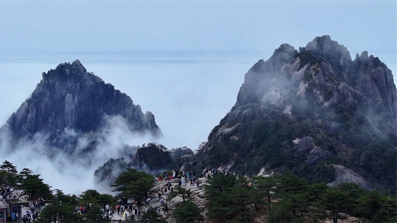 黄山奇松不但能独立成景,如迎客松、黑虎松、团结松等,是游人必到的网红打卡点;还能与峰石搭配,相辅相成,如“梦笔生花”“喜鹊登梅”“天女绣花”“仙人下棋”等著名景观,都是奇松与峰石组合的景观。清代诗人黄景仁曾有“黟山三十有六峰,峰峰石骨峰峰松。有时松石不可辩,一理交化千年中。”的诗句。另外,由黄山松组成的不同森林群落,更是发挥着涵养水源、美化环境、孕育云海、滋养温泉的重要作用。奇松已经成为黄山风景区最优美的景观资源和最靓丽的宣介名片,吸引着海内外的宾客。