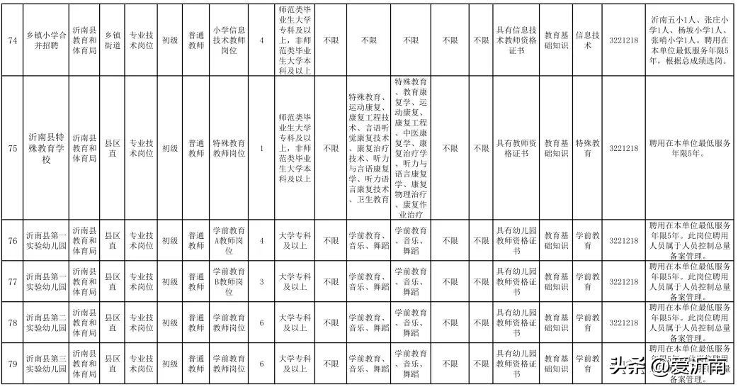 根据事业单位公开招聘工作有关规定,经研究确定,2023年沂南县教育系统部分事业单位公开招聘教师350名(含幼儿园人员控制总量备案管理59名),现将有关事项公告如下: