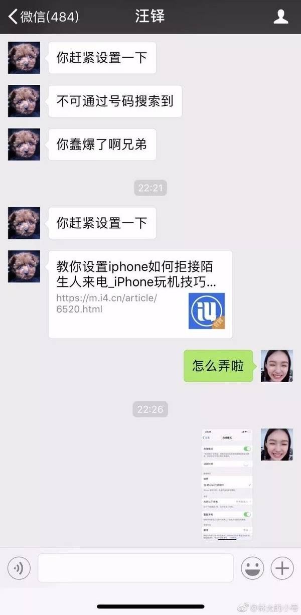 前段时间林允在小号上发了自己和汪铎的聊天记录截图,吐槽对方拿自己的丑照做来电头像,结果一不小心暴露了自己的电话号码。