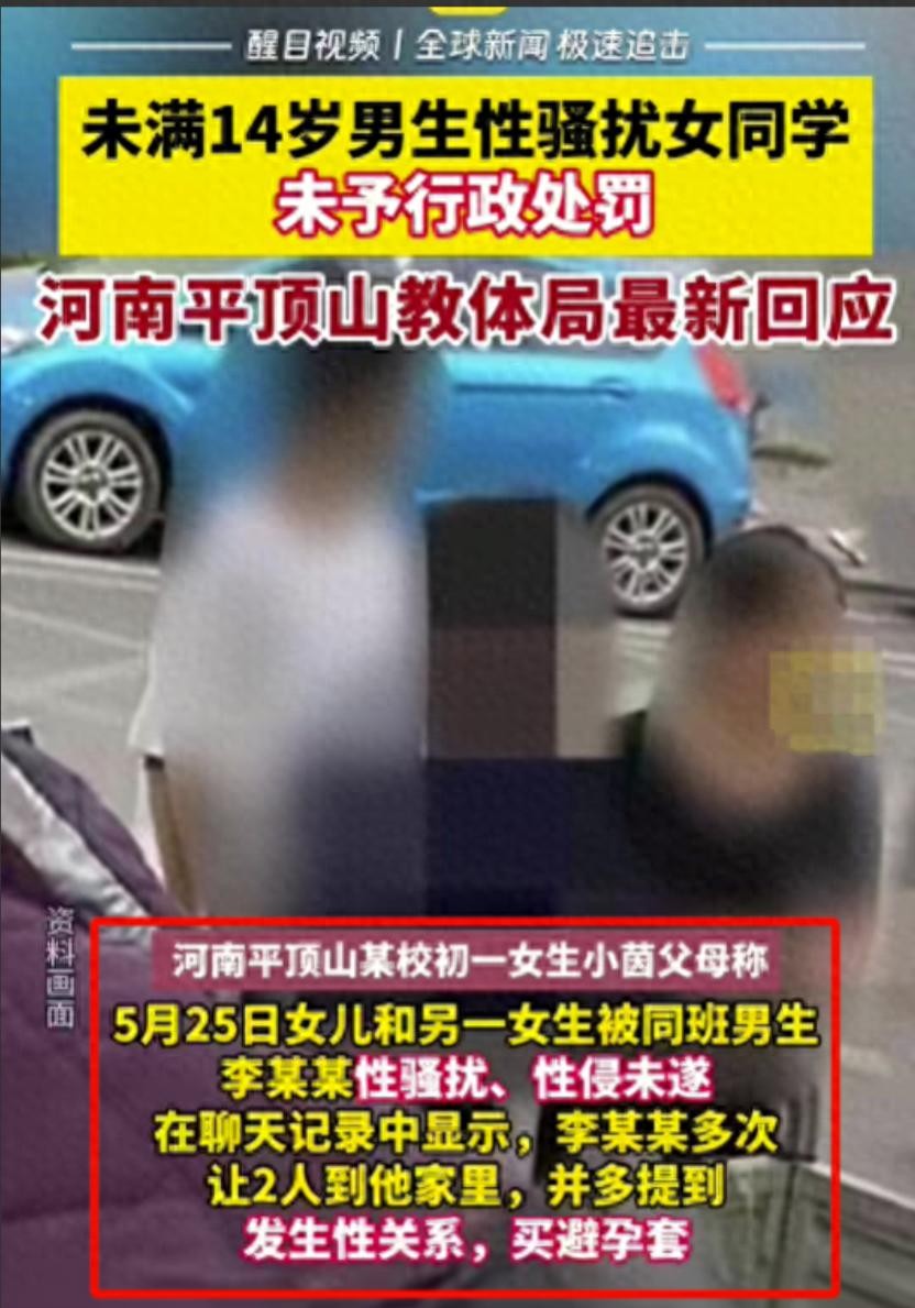 哎呀,这个世界,时不时就能冒出些让人啼笑皆非的事情。河南平顶山一初一男生性骚扰女同学的闹剧,竟然因为男生年纪未满14岁,被免于行政处罚,只是一声警告给了他的监护人。