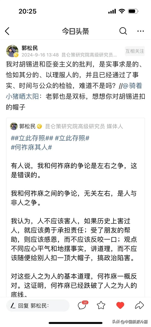 胡锡进的言论常被认为试图平衡多方观点,但这种“左右逢源”的策略在涉及底线问题时容易引发争议。例如: