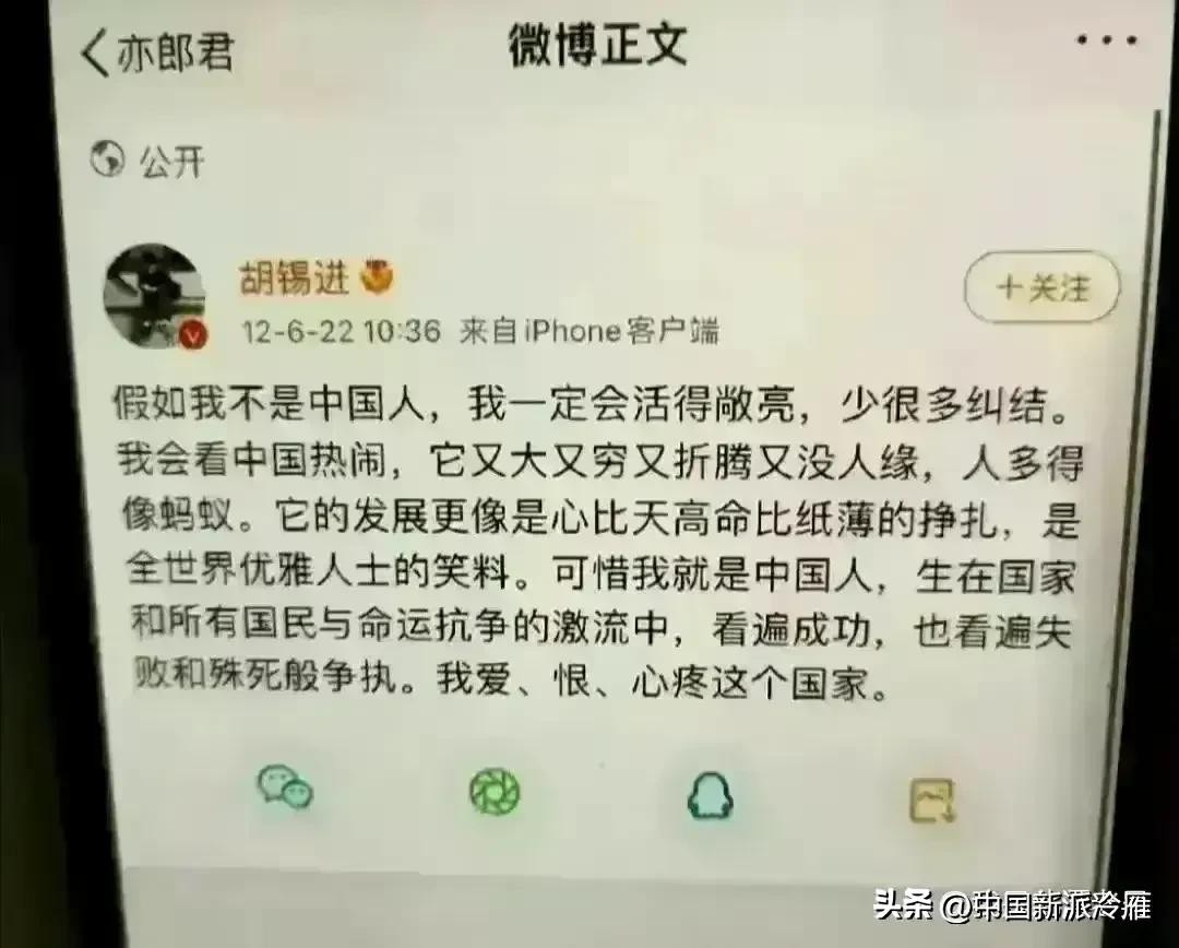 胡锡进的争议本质上是社会价值观分化在舆论场的投射: