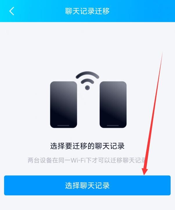 6.在聊天记录迁移页面点击“选择聊天记录”(注意两台设备需要在同一WiFi下才可以迁移聊天记录);
