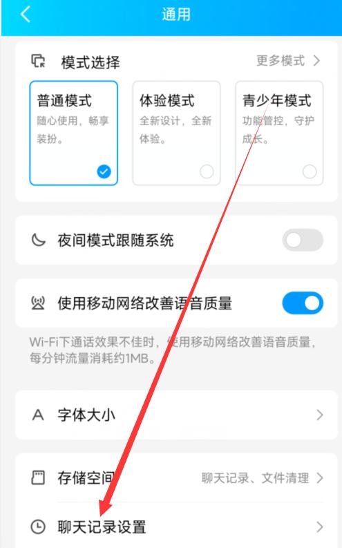 4.在通用页面点击“聊天记录设置”;