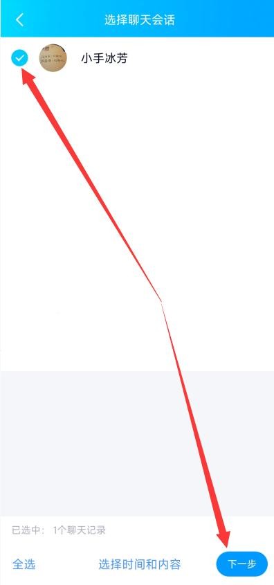 7.选择需要迁移的聊天记录,点击“下一步”;