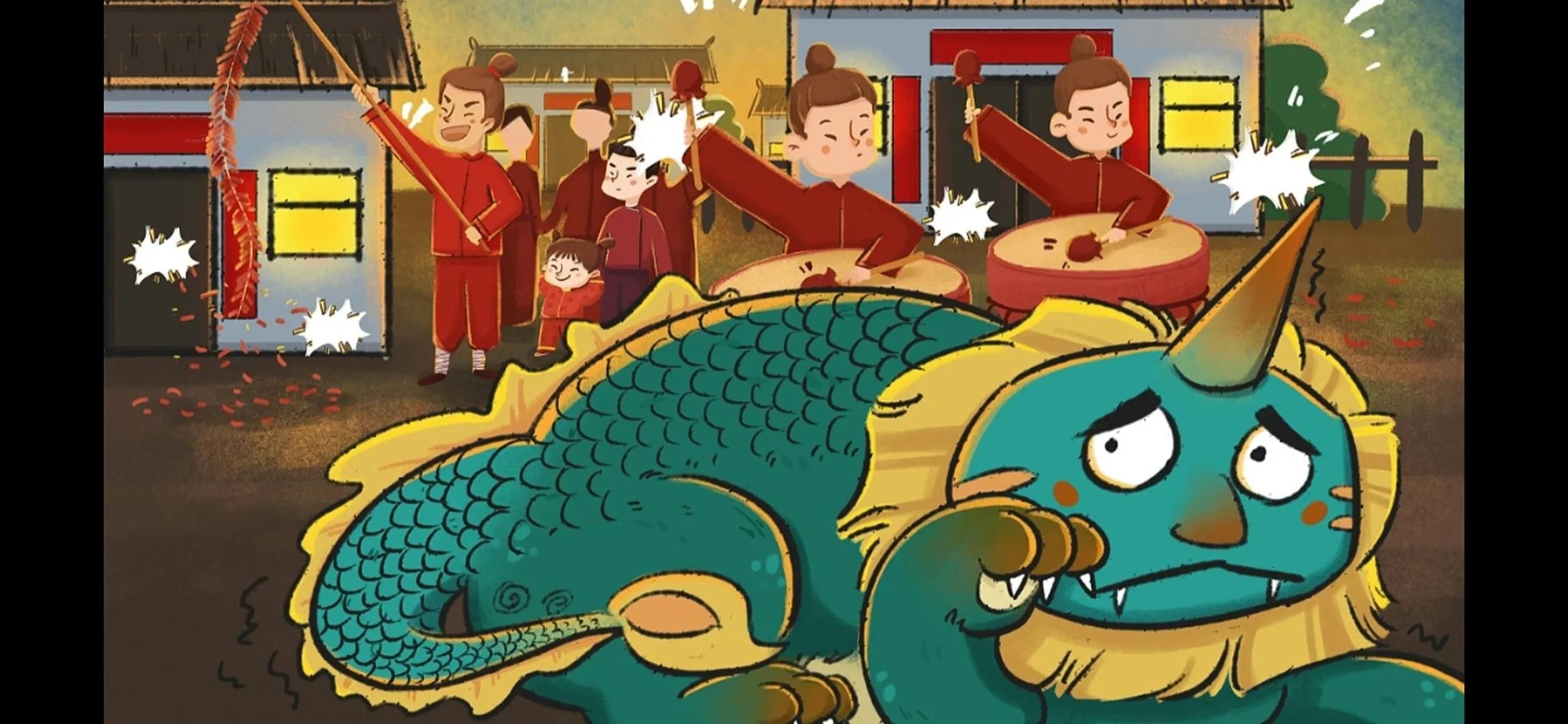“年”是中国古代神话传说中的一种神兽,它的形状像龙,头上有一对触角,身体上覆盖着鳞片,还有四只爪子和一条长长的尾巴。“年”的形象在中国传统文化中非常重要,它不仅是春节的象征,也是中国文化中的一个重要元素。