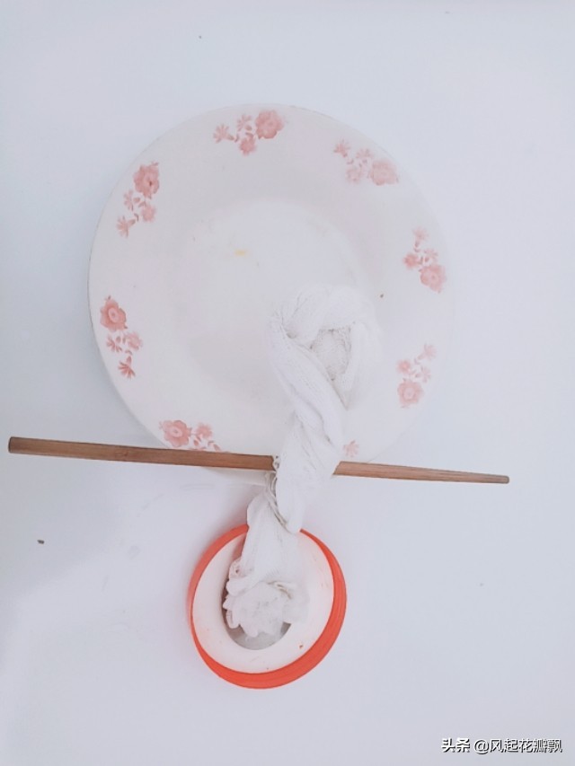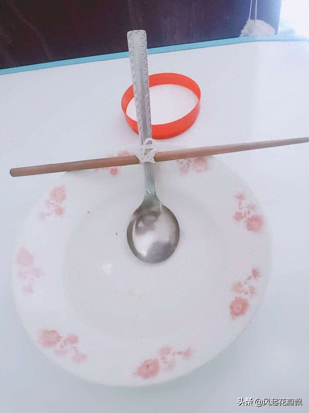 瓷碗、勺子、细线(使用热熔胶效果更佳)、棉布、小平碗。