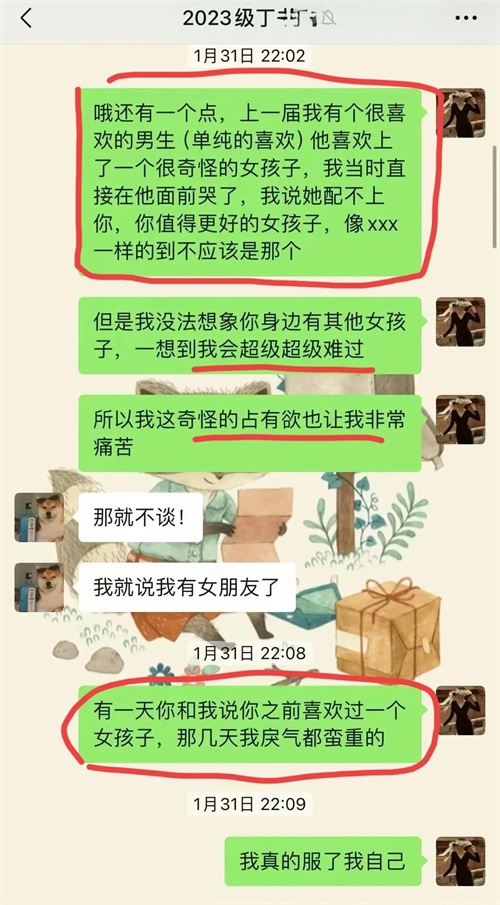 从这里看出,张某是在用暗示常某身边不能有别的女生,否则自己会很难过。