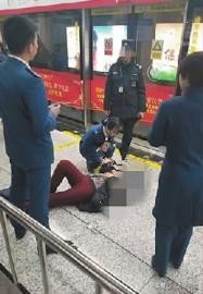 即使站务员一直在和那位女士解释是因为她的安全所以才拦她的,可是对方说什么都不听,后来还自己躺到了地上。