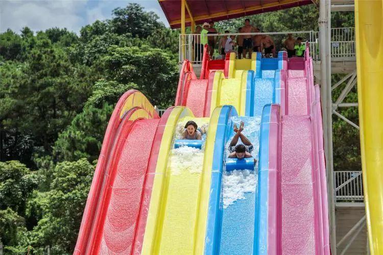 延伸阅读:彩虹竞赛滑梯是一款非常经典的水上乐园游玩滑梯,可以多道并列设计,一般为3~10道,可以用身体或浮垫滑行,可以同时出发进行比赛,该设备的参与与互动性非常强,同是具有很强的接待能力,让游客可以多次参与到比赛当中,获取欢乐和畅快的独特体验。