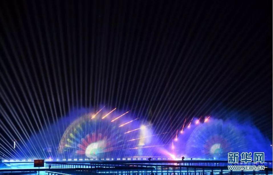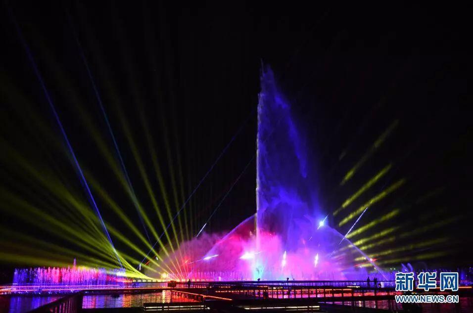 该喷泉将音乐、炫彩、喷泉三者完美融合,有14组音乐控制喷泉组合,其中,主喷泉喷射高度能够达到80米。喷泉伴随着音乐旋律的起伏,再配合2000多盏外控水下彩灯,将整个水面打造成一幅壮观的美丽画卷。 据悉,炫彩音乐喷泉项目将一直持续到10月8日,每天晚上20:00-20:30、21:00-21:30两个时段开放。