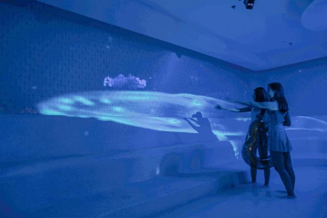 在光影水乐园里,玻洛洛卡 全面启用空间视错觉、光影特效等高科技 ,用上百台投影仪、灯与定制化的程序,结合水池设备,创造了一个可触摸、可进入、可任意玩味的真实炫酷场景。不但如此,玻洛洛卡还 引进了符合欧盟6P环保标准的玩水设备 ,而这类欧洲顶尖深海漂浮水乐园设备还是首次在室内玩水项目中呈现。打造了小小忍者勇士闯关,魔鬼鱼湾,马里亚纳海沟,互动海洋,波光小径等丰富的玩水项目,将水乐园融合光影,为消费者带来一个不一样的,属于玩水的夏天。