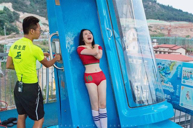2018年,重庆汉海鲸豚湾水世界举办了一场以世界杯为主题的水上挑战赛,10名青春性感的足球宝贝勇敢挑战了园内最新鲜最刺激的6大项目。其中,园区新引进的明星级玩水设备“深海跳楼机”最受欢迎,瞬间成为了水上网红项目,让人大呼又爱又恨。