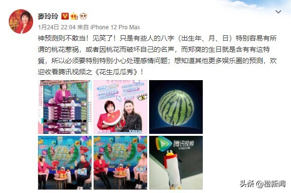 批中郑爽有桃花劫兼婚姻差 麦玲玲“神预测”被网友追捧