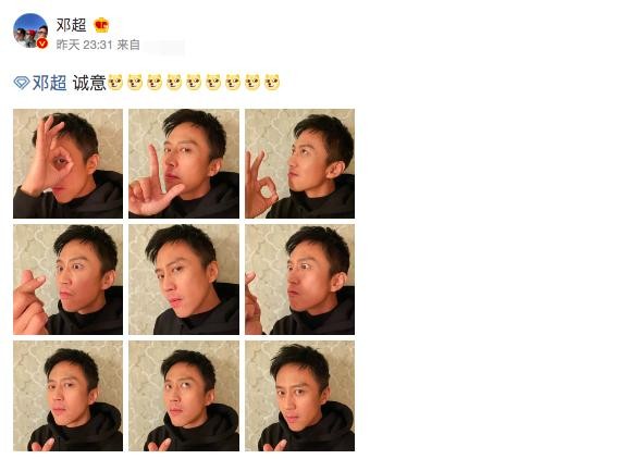 12月10日,邓超在社交平台晒出自拍九宫格。