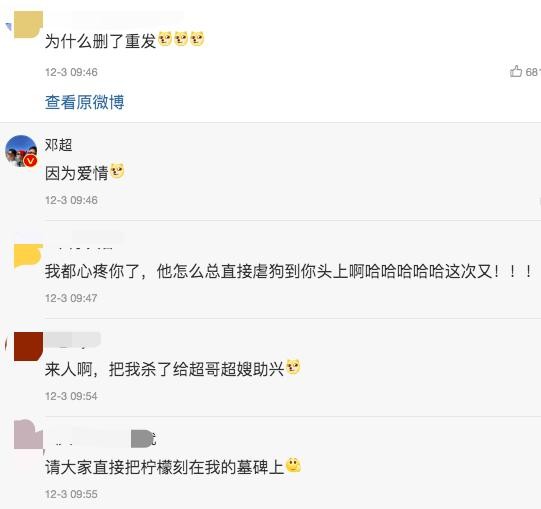 不仅如此,有网友发现邓超的视频是删除重发的,质疑他为什么要重新编辑,没想到邓超高调回复:"因为爱情"。
