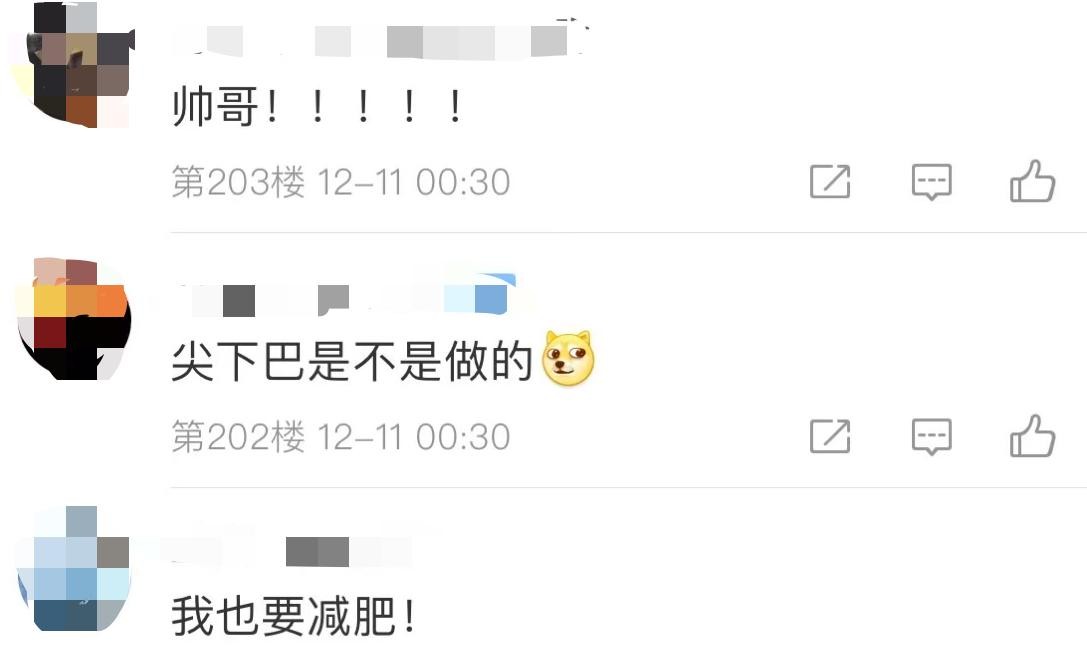 粉丝对邓超暴瘦的状态表示佩服,他已经是在为了新戏减肥,还有网友调侃称"尖下巴是不是做的"。