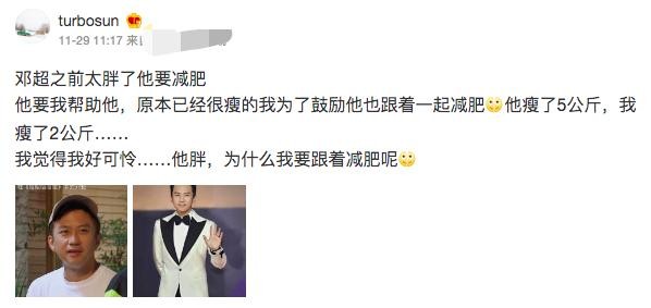 孙俪刚在社交平台秀恩爱,没隔几天,邓超便晒出了另一段视频,称"你陪我减肥,我就陪你工作呗"。