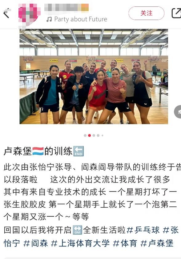 9月3日,有网友在网上曝出和张怡宁的合照,并表示这次张怡宁带队的卢森堡训练已经结束。