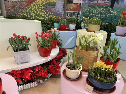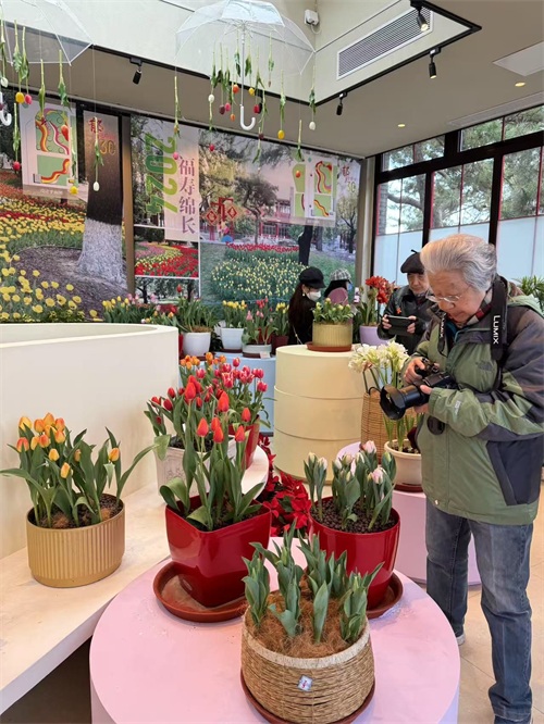 这里正在举办“郁”见中山30年——郁金香特展,通过花艺作品和组合盆栽等形式,展出60多个品种的郁金香及其他球根观赏花卉近万株。中山公园园林科技科高级工程师柴思宇介绍,中山公园春花·郁金香文化节为期45天,设置了7大主题景区,共展示郁金香及其他球根花卉18万株,首次推出郁金香主题文化市集,涵盖非遗、国潮手作、食品三大品类。