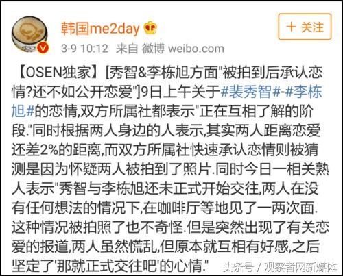 不过关于秀智与李栋旭的相恋过程,今天上午博主@韩国me2day 发布了这样一条微博。这波神操作,我服了!