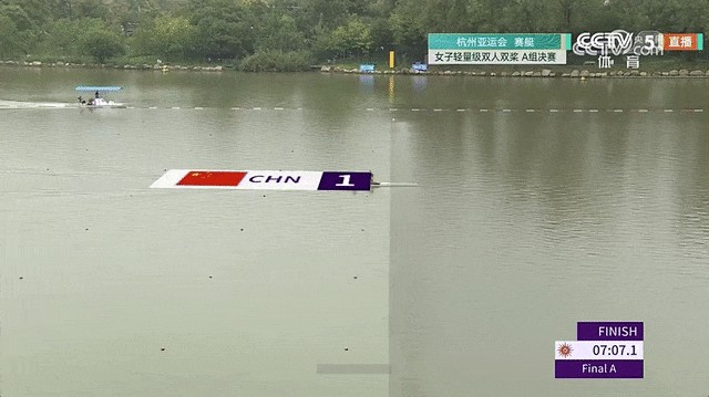 9月24日,杭州第19届亚运会,赛艇女子轻量级双人双桨决赛,中国组合邹佳琪/邱秀萍夺得金牌,这是本届亚运会产生的首枚金牌,也是中国代表团获得的首枚金牌。