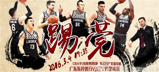 北京时间3月4日,今晚辽宁男篮将在客场迎战广东队,这也是季后赛半决赛的第四战,赛前辽宁男篮官方微博发布了主题为“踢莞”的海报。