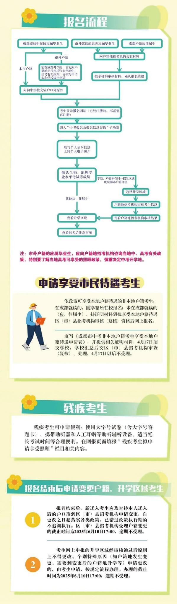 3、户籍是成都市的往届初中毕业生(也就是2024年及以前毕业的初中生),但目前没有在高中(含职高)上学的,可以报名参加今年的成都中考。