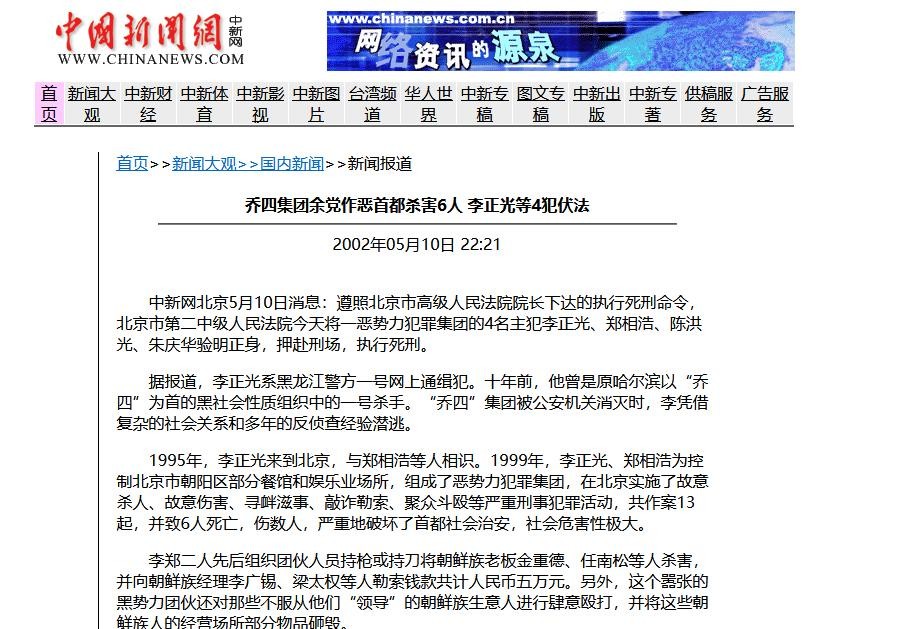 参考资料:乔四集团余党作恶首都杀害6人 李正光等4犯伏法