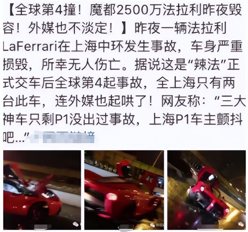 2014年,“全球第四撞!魔都2500万法拉利昨夜毁容”一则新闻迅速在网上传播,吸引了不少网民的眼球。