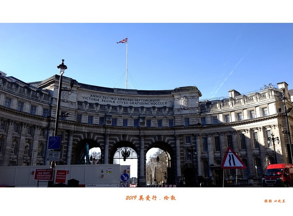 位于广场一角的是伦敦的水师提督门。水师提督门是英国伦敦的一座纪念性建筑物,建于1912年。水师提督门位于伦敦西敏市中心,它连通了特拉法加广场和白金汉宫前的林荫路,因连接旧海军部(水师提督衙门)而得名,又称作海军部拱门。